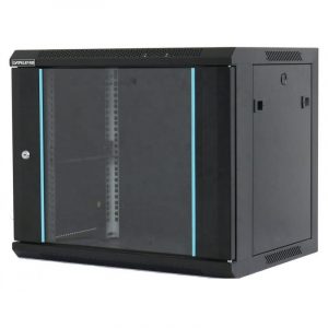 Rack 9U 600×450, montare pe perete, usa din sticla, panouri