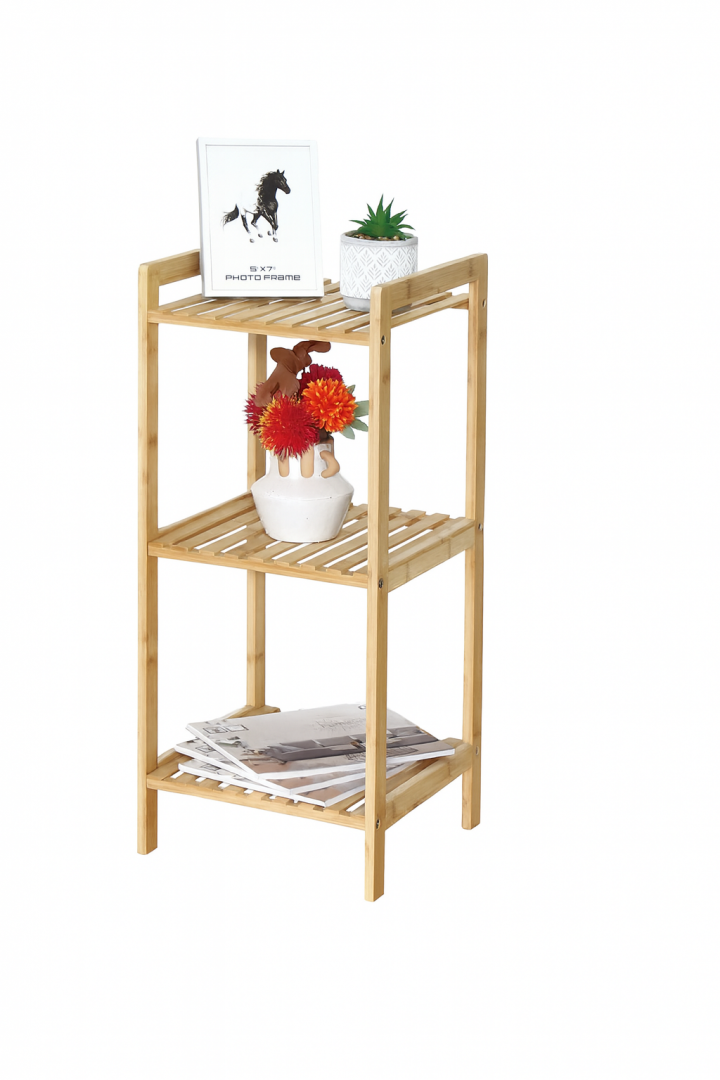 Etajera din bambus cu 3 rafturi, un articol versatil de mobilier pentru casa, potrivita pentru baie, dormitor, sufragerie sau hol. Are un design simplu, modern, cu lamele, care se integreaza usor in diverse stiluri de interior.