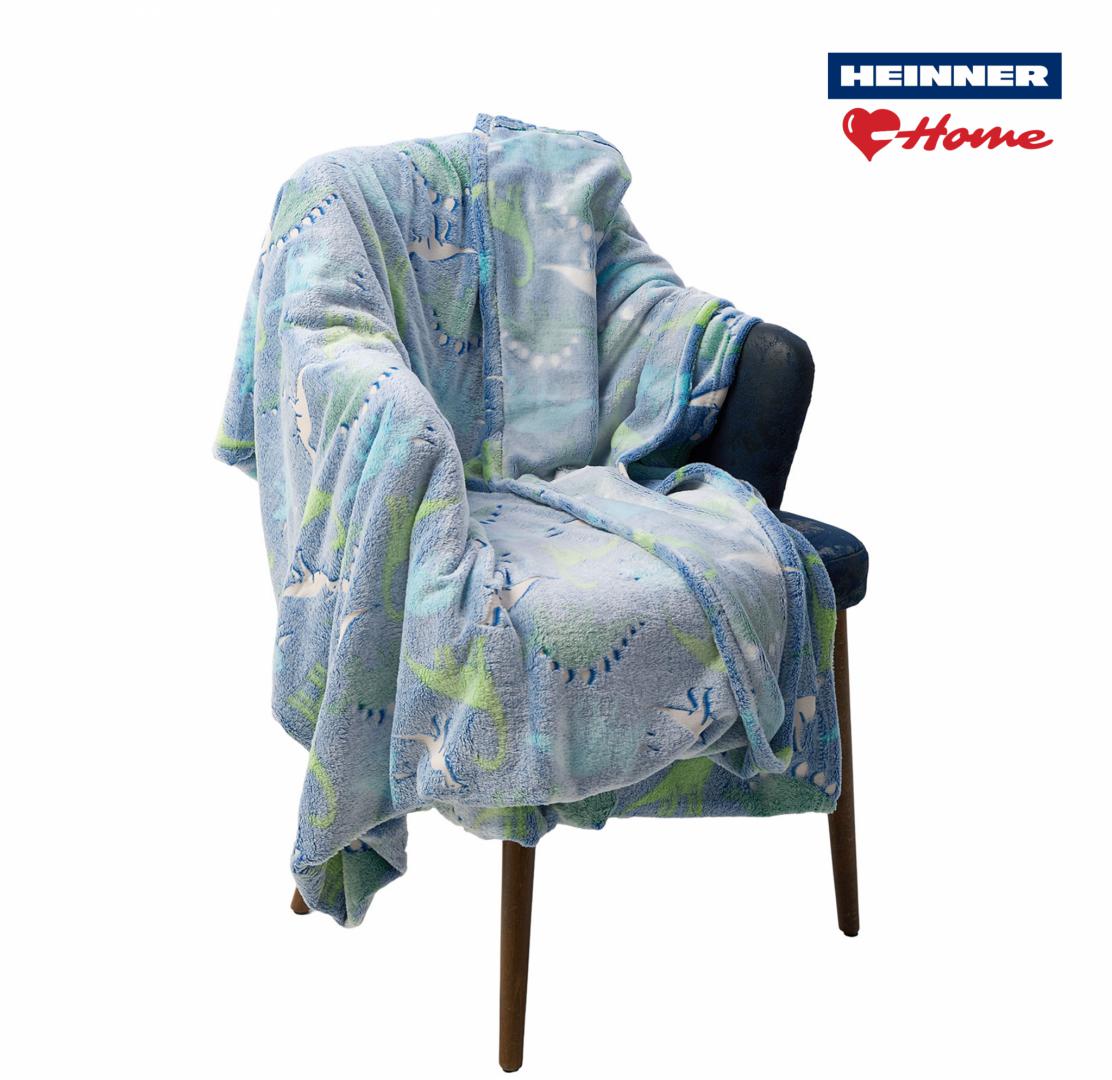 Patura fosforescenta Dino, 160×200 cm – moale si calduroasa, din poliester flannel (275 gsm).